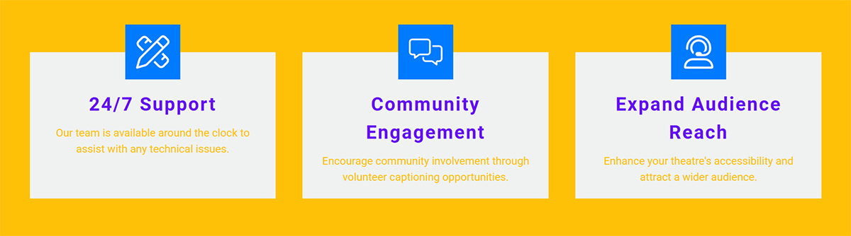 Theatre Captions is dedicated to providing quality open captioning services, making live performances accessible to all. Connect with us for more information.